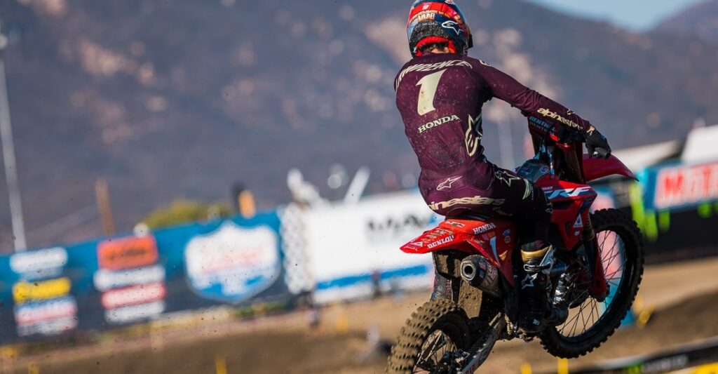 The last AMA Pro Motocross race of 2022 was held on a hot day at Fox Raceway in Pala, California. Even though the factory Honda rider, Jett Lawrence has had a dominate season, the last fews races haven’t gone the way he wanted which made the championship crown come down to the last race. I’ll Jett had to do was score inside the top 12 in the first moto and the Australian would once again reign champion of the 250 National class. It was the Pro Circuit Kawasaki riders of Jo Shimoda that had the only chance of hope to take the title, however his changes were bleak.
