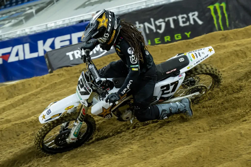 The 250 class has shifted to the East Coast division this week, and we have a new lineup of riders, all eager to hit the track and secure their first win of the season. A mixture of rookies and veterans are about to go head-to-head to see how their offseason training has paid off. Haiden Deegan, always fast, returns and will be tough to beat, but racers like Austin Forkner and Cameron McAdoo are determined to put a stop to his dominance. Rookies like Daxton Bennick have been training hard, and despite being new to the series, they have the potential to deliver a great effort and achieve a notable result.