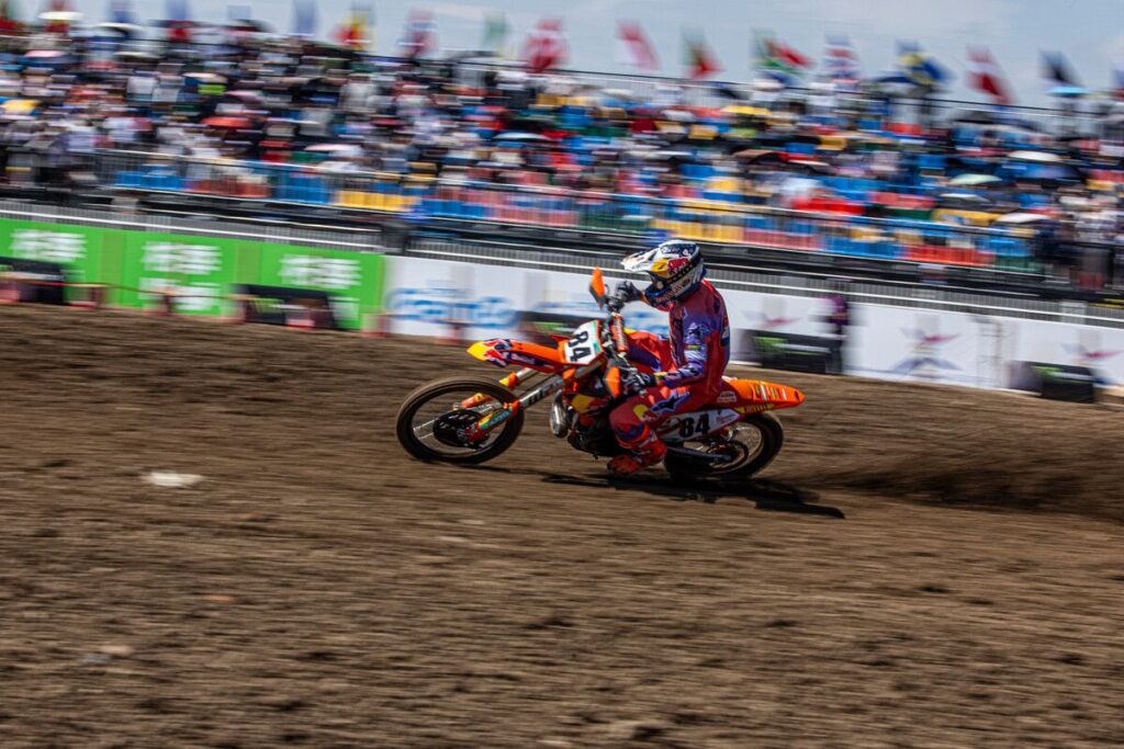 The MX2 title battle is enthralling, as German Simon Längenfelder and Dutch reigning Champ Kay de Wolf have won the last seven GPs between them, with neither able to take back-to-back victories all year! Will that trend continue, or will the red plate holder now take control? With 12 points between them it should go all the way to the wire!