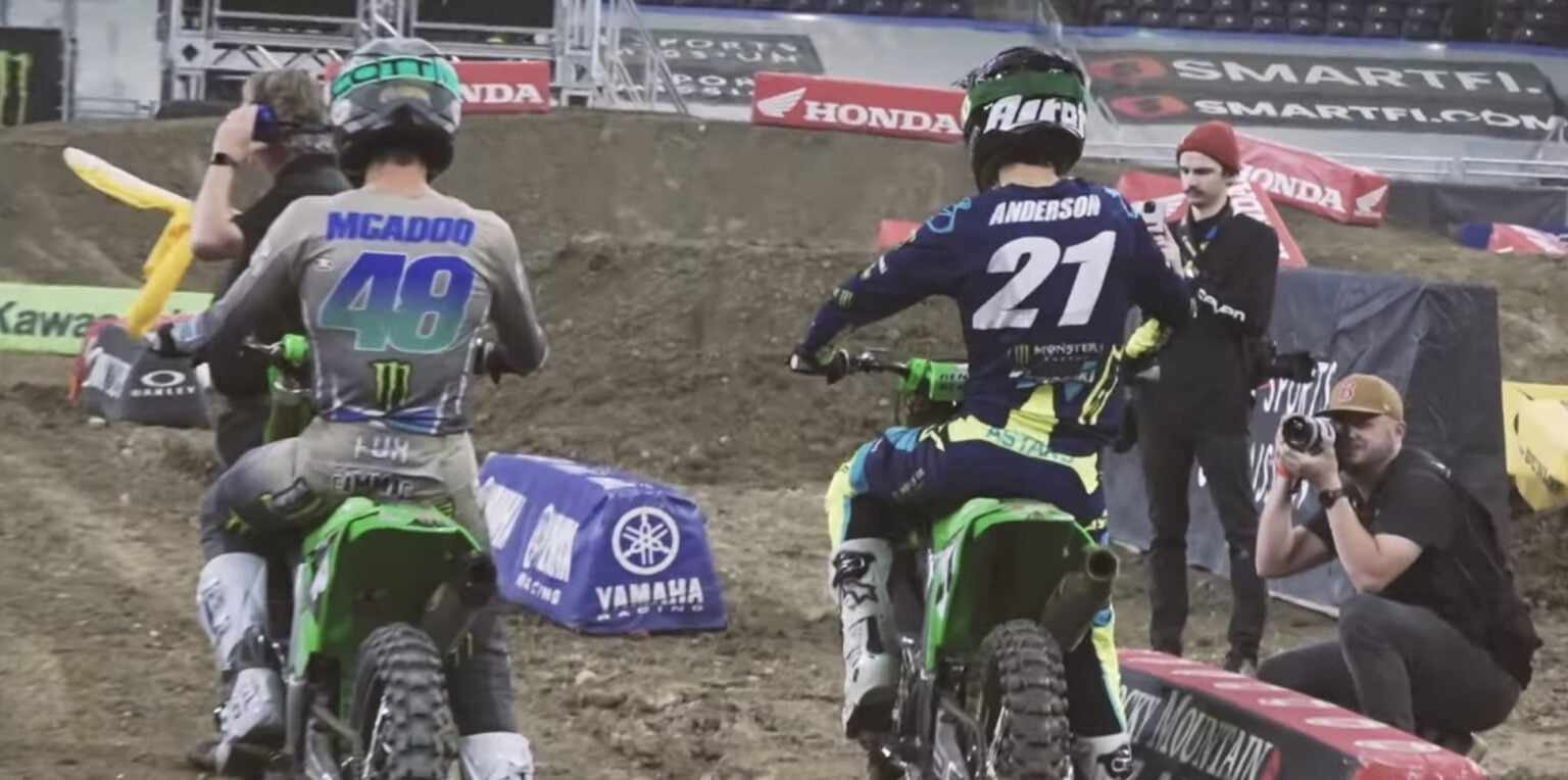 Ford Field has been turned into a battleground for round ten of the series and on Friday, we got to watch an assortment of riders get a feel for the track. Press play to watch raw footage of Chase Sexton, Cooper Webb, Marvin Musquin, Jason Anderson, Cameron McAdoo, Kyle Chisholm, Derek Drake, and some others click off laps in the Motor City.