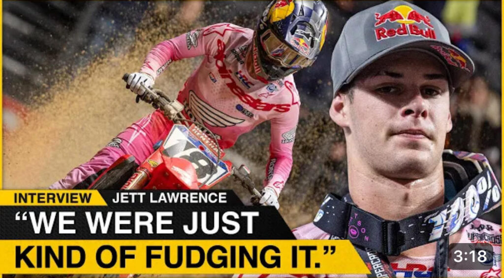 Jett Lawrence epitomized excellence on French soil – he stormed to a clear win in Paris’ La Défense Arena and strengthened his run towards 2024 Monster Energy Supercross. Lawrence’s weekend in Europe was not without its drama, as he had run ins with his brother and suffered from mediocre starts on the second day of competition. All of those topics, as well as a handful of others, are tackled in this Vital MX interview, which is presented by DeCal Works. The interview will be transcribed in due course.