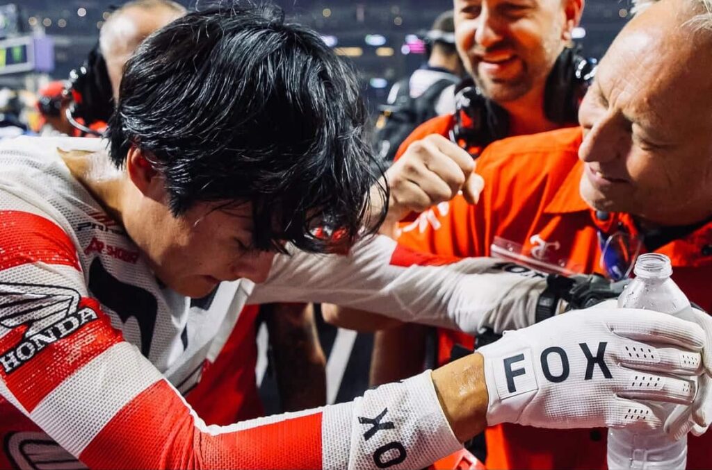 Honda HRC Jo Shimoda pulled off a gutsy win last night at St. Louis SMX, grabbing the 250 overall despite feeling far from his best. He battled through fever, heat, and energy crashes but leaned on his experience and grit to survive the motos and come out on top.