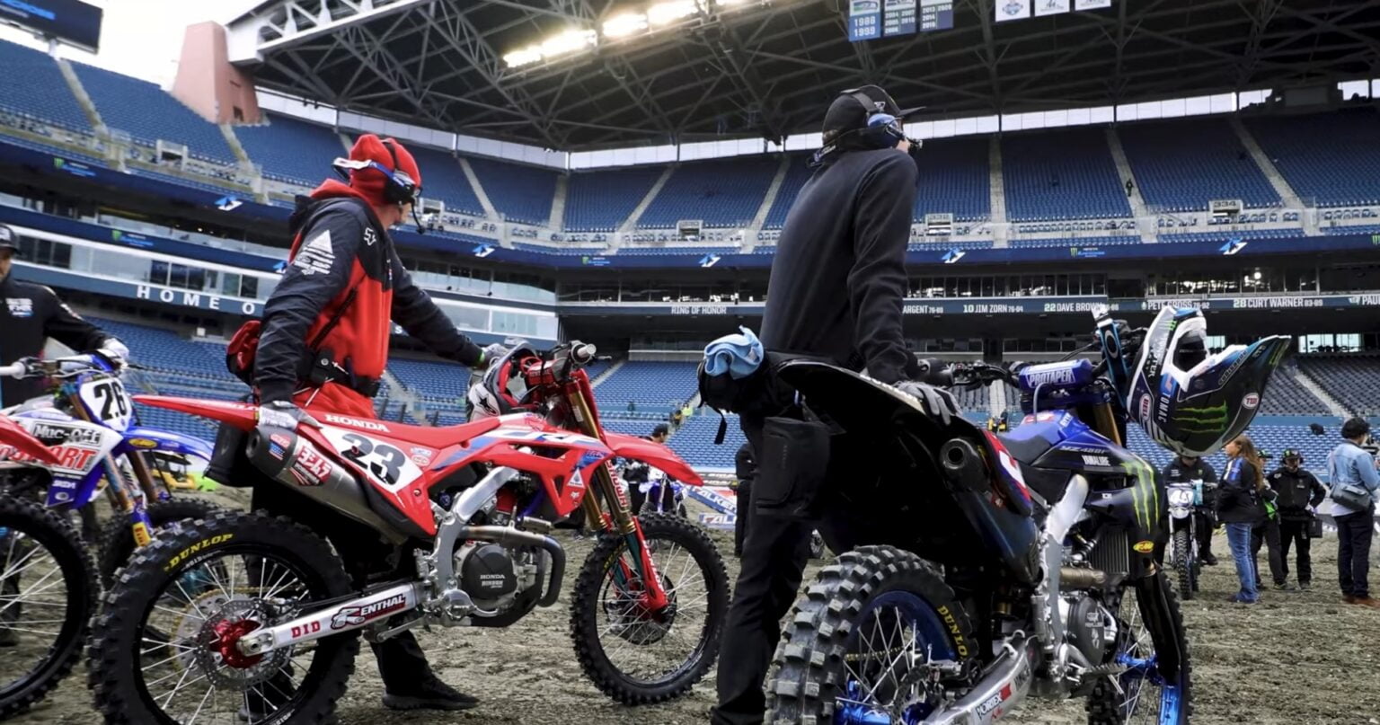 Seattle Supercross Round 12 press day footage of riders as they got an early sneak peak at the course. Riders like Chase Sexton, Eli Tomac, Jason Anderson, Cooper Webb, Hunter Lawrence, Jo Shimoda and more got to