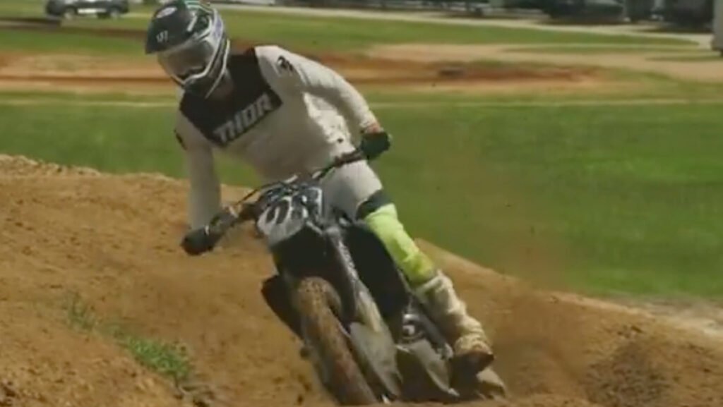 Craig, who won a 250 supercross titles just a couple of months ago, knows the bike and is now testing the machine outdoors with a US flag as a caption:
