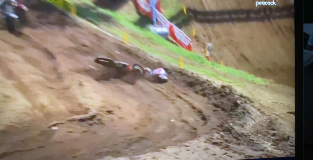 Hunter down hard while leading 😳#ProMotocross #SMX #RedBudMX pic.twitter.com/Q77OzP1QKq