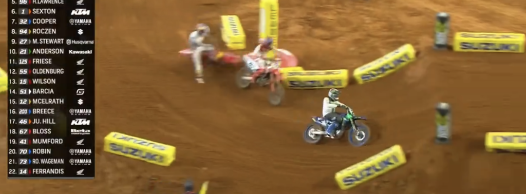 Honda HRC Jett Lawrence crashed out of the lead, seemingly in control of the race with only a couple of laps remaining. He then collided with Vince Friese while attempting to pass Webb for the lead on the final lap. Jett later admitted that he should have been more aware of the track ahead to avoid Friese.
