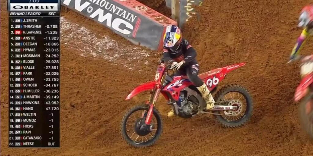 Hunter Lawrence went down trying to pass for 2nd place at Race2 Triple Crown Arlington Supercross