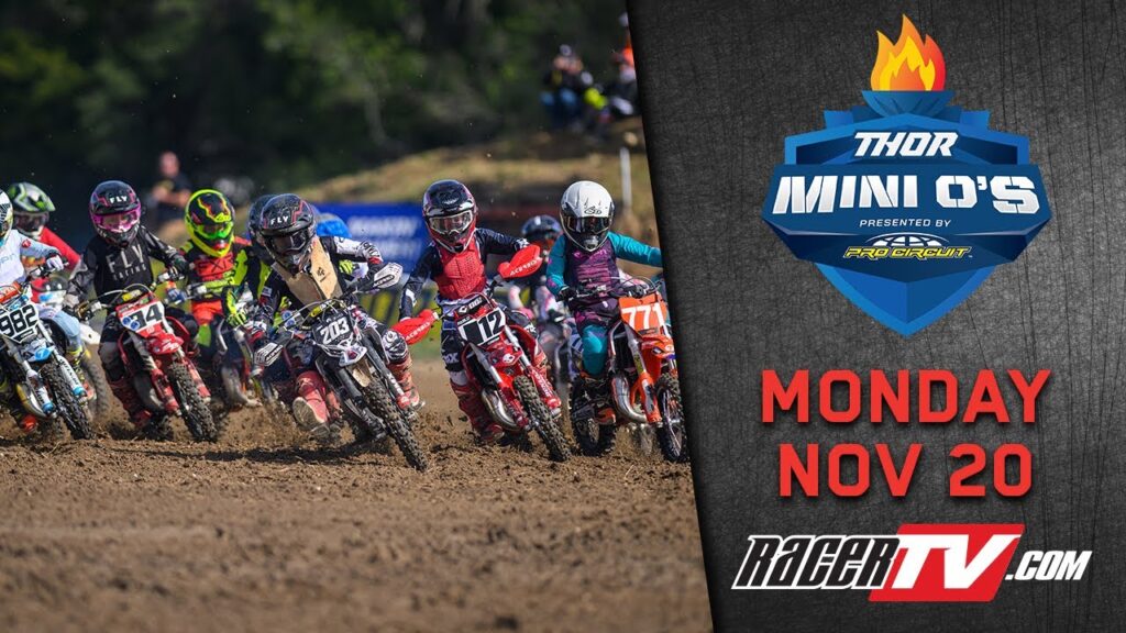 RacerTV will produce free live coverage from the 2023 THOR Mini O’s at Gatorback Cycle Park in Alachua, Florida, starting at 7:30 a.m. ET on Sunday, November 19, 2023, and running all the way through Saturday, November 25. You can follow along with the racing throughout each day with RacerTV. View the coverage times below. Scroll down for the embedded live stream.